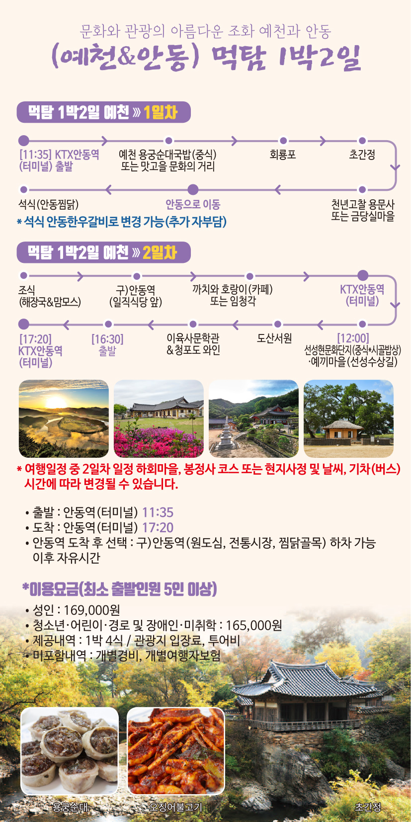 예천&안동 먹탐 1박2일 여행상품, 9~10월 특별운영( 일요일~월요일)