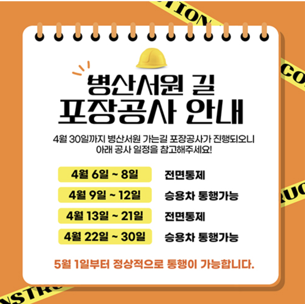 병산서원 도로 포장공사로 4월30일까지 차량통제